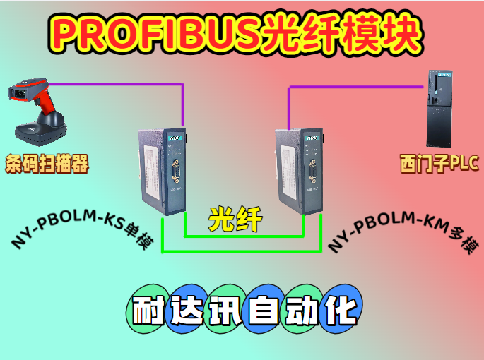 主站端:将耐达讯自动化PROFIBUS光纤主站模块接入PLC的PROFIBUS-DP主站接口,作为整个通讯网络的“指挥官”,负责下发扫码指令、接收并处理扫描数据,相当于车间的“调度中心”。
