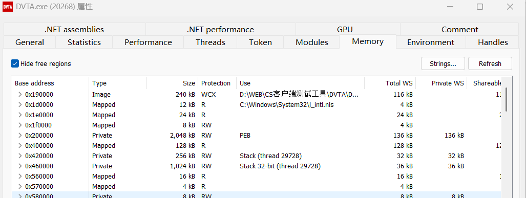 使用Process Hacker双击选中DVTA,点击Memory->Strings