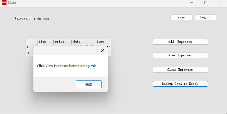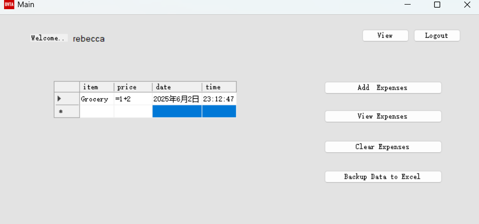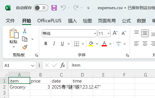 点击”Backup Data to Excel”保存,打开保存的expenses.csv