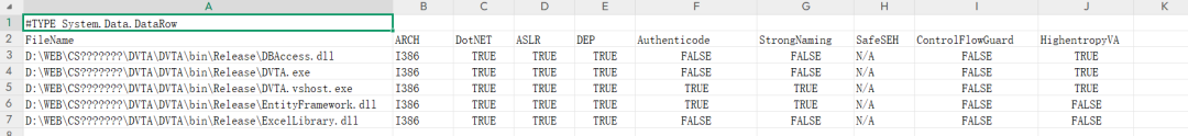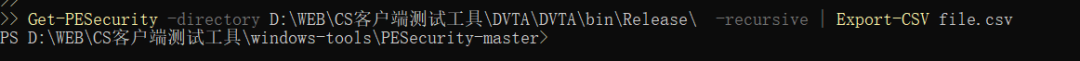 Get-PESecurity -directory D:\WEB\CS客户端测试工具\DVTA\DVTA\bin\Release\ -recursive | Export-CSV file.csv