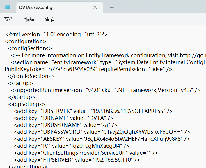 修改DVTA.exe.Config中的ip为192.168.56.110