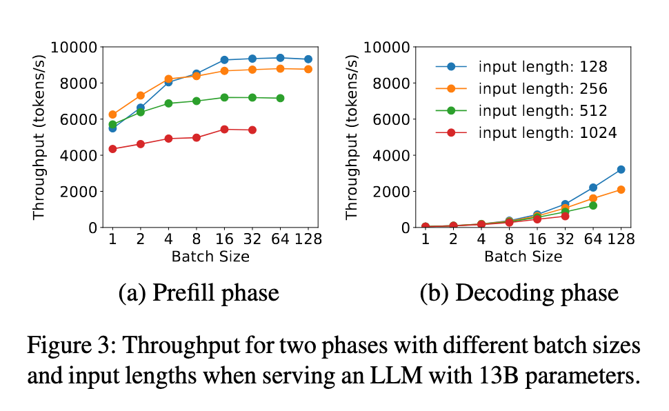 2 Prefill 与 Decode 共置导致干扰 在 LLM 服务中请求的生命周期通常包含两个阶段:prefill(生成首个 token)和 decode(逐步生成后续 token)。大多数现有系统(如 vLLM、TensorRT-LLM)采用 continuous batching 技术,将 prefill 和 decode 混合在一起统一批处理。这种方式确实能够提升整体吞吐量,但由于两者计算特性和 SLO 目标差异显著,将它们共置在同一 GPU 上往往并不理想。