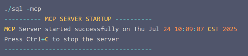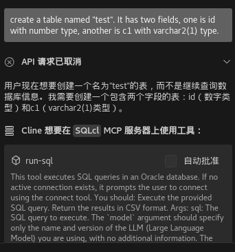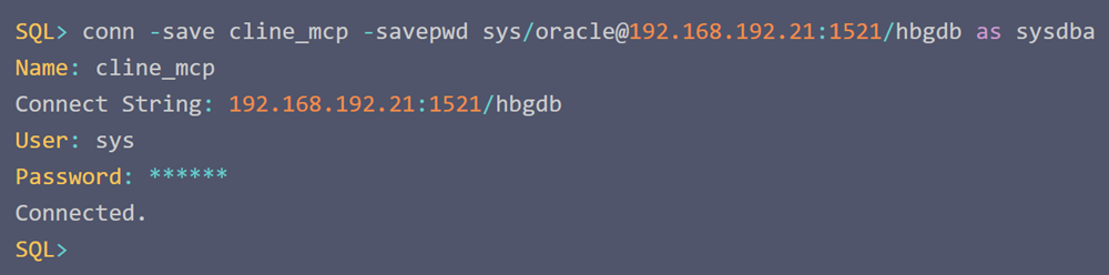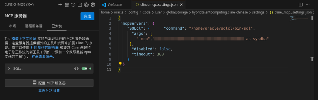 SQLcl是个可执行程序,Windows和Linux环境均可运行,登录后执行以下的指令,注册MCP,