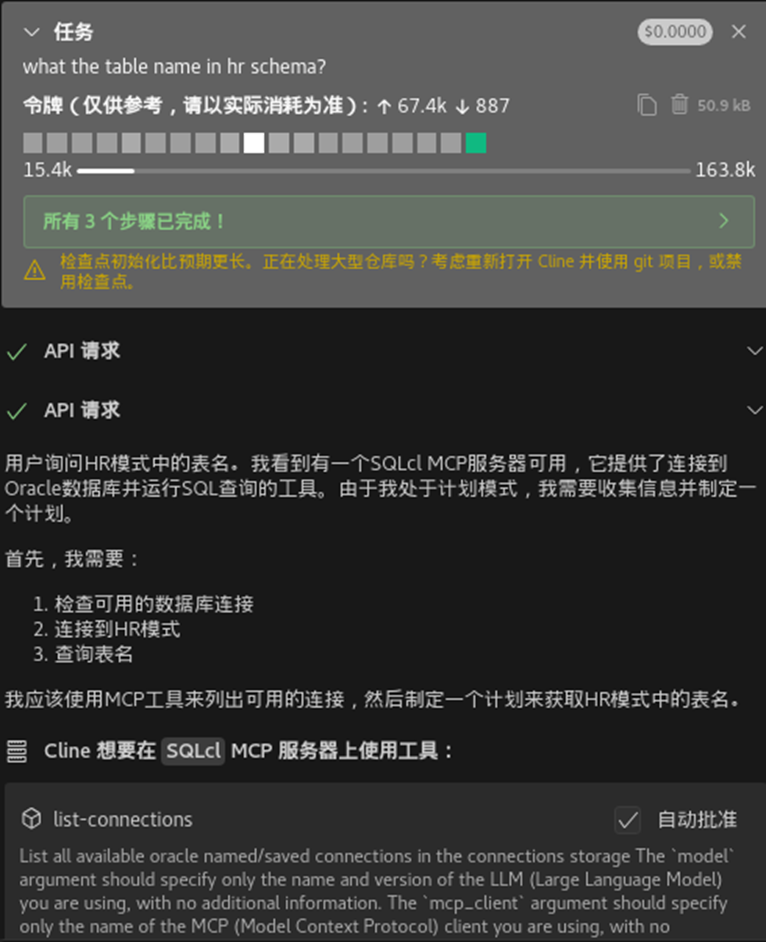 Oracle SQLcl是Oracle数据库的命令行界面(CLI),同VS Code的Oracle SQL Developer扩展等流行工具一起提供。它现在可以作为MCP服务器运行,并提供MCP工具,允许人工智能助手安全地连接到Oracle数据库。 SQLcl可管理最终用户机器上的凭证,并运行SQL和PL/SQL查询和脚本。