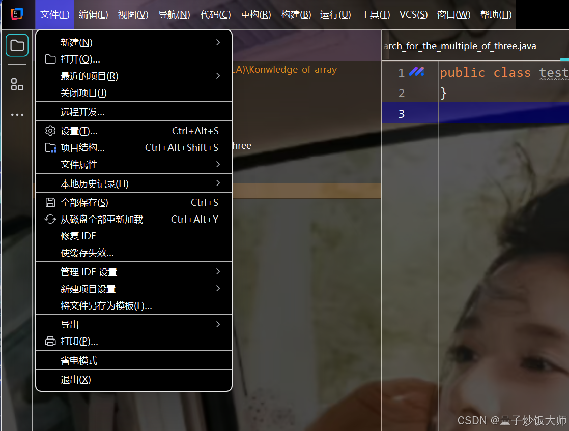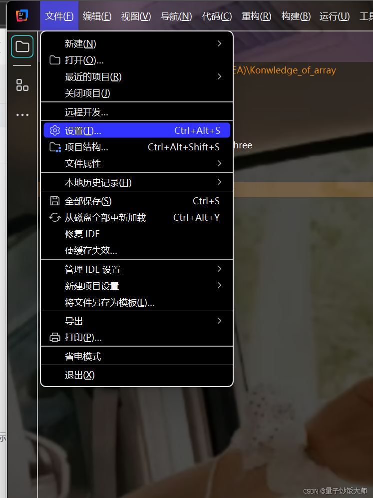 打开IDEA左上角的File(因为我这里是中文版,所以显示的是“文件”)