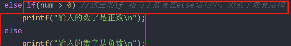 else if(num > 0) //这⾥的if 相当于嵌套在else语句中,形成了嵌套结构
