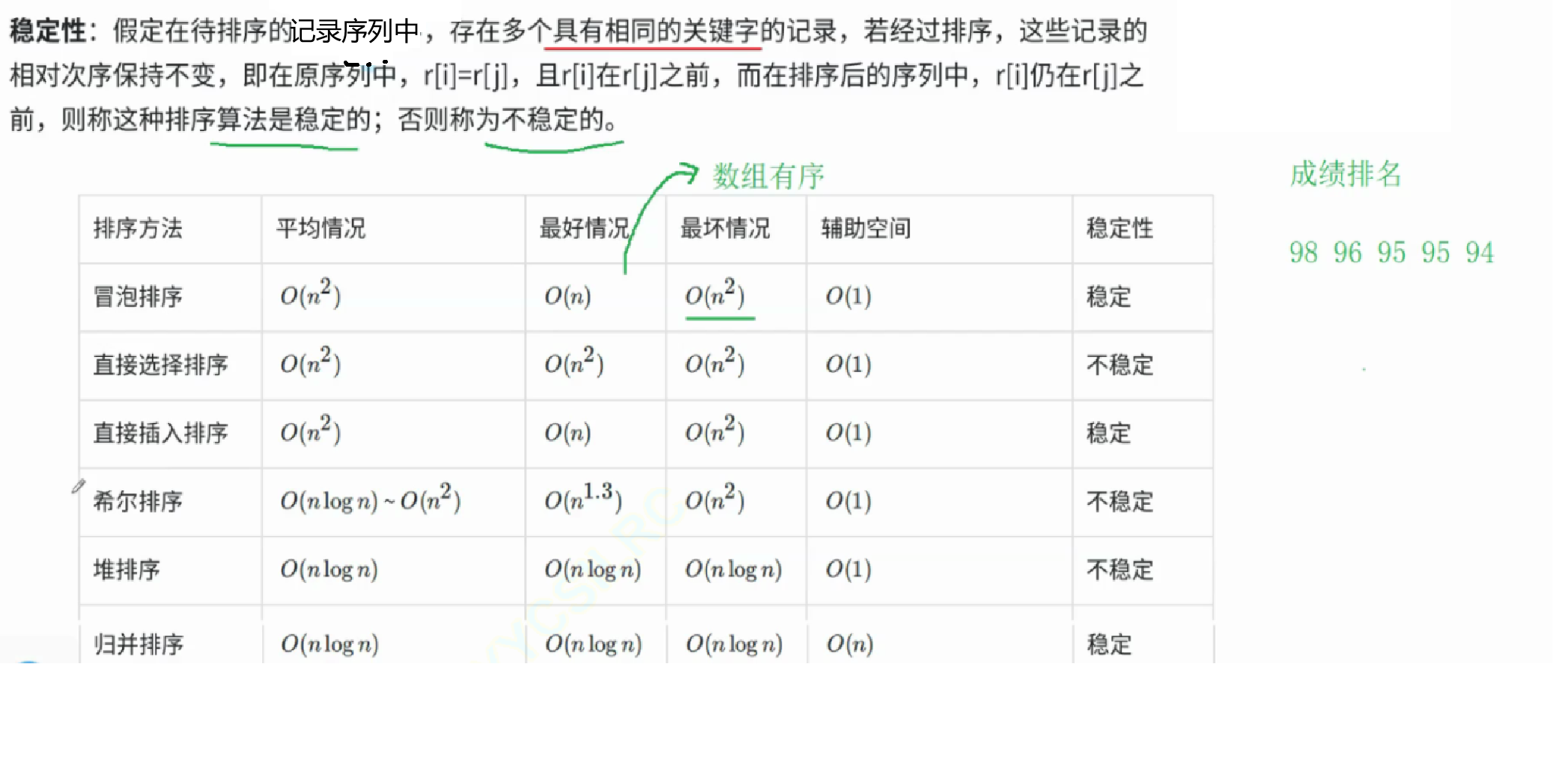 上面成绩的例子就很好地说明了稳定性的重要性, 同样是95分的两名同学,不稳定即先交卷的反而排在后交卷的那位95分的同学后面。