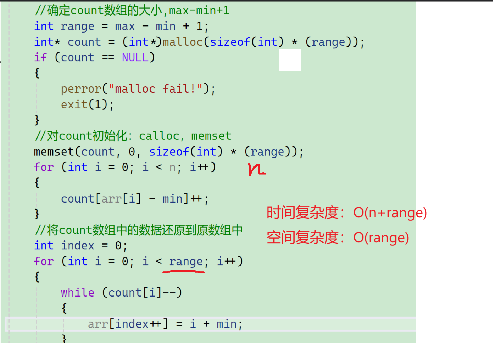 这个时间复杂度O(N + range)要比我们之前的这几种排序的时间复杂度高很多,所以说效率很高。