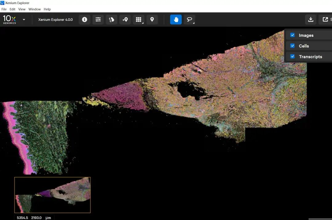 安装完成后,双击 .xenium 文件即可打开。软件会自动加载组织影像和空间转录组细胞点位。