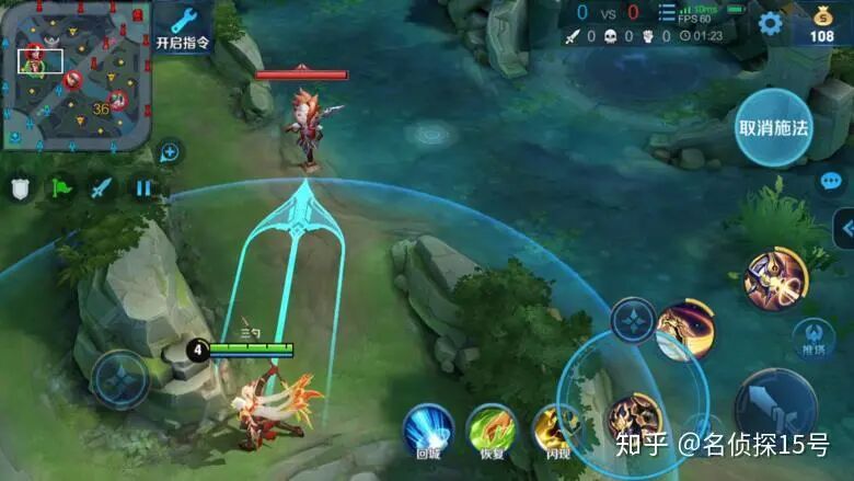 如图,当目标处于我的上方时,杨戬的 1 技能还是比较容易命中的,但是在目标处于屏幕下方时,玩家就无法获取敌方信息,非常影响预判和命中率。