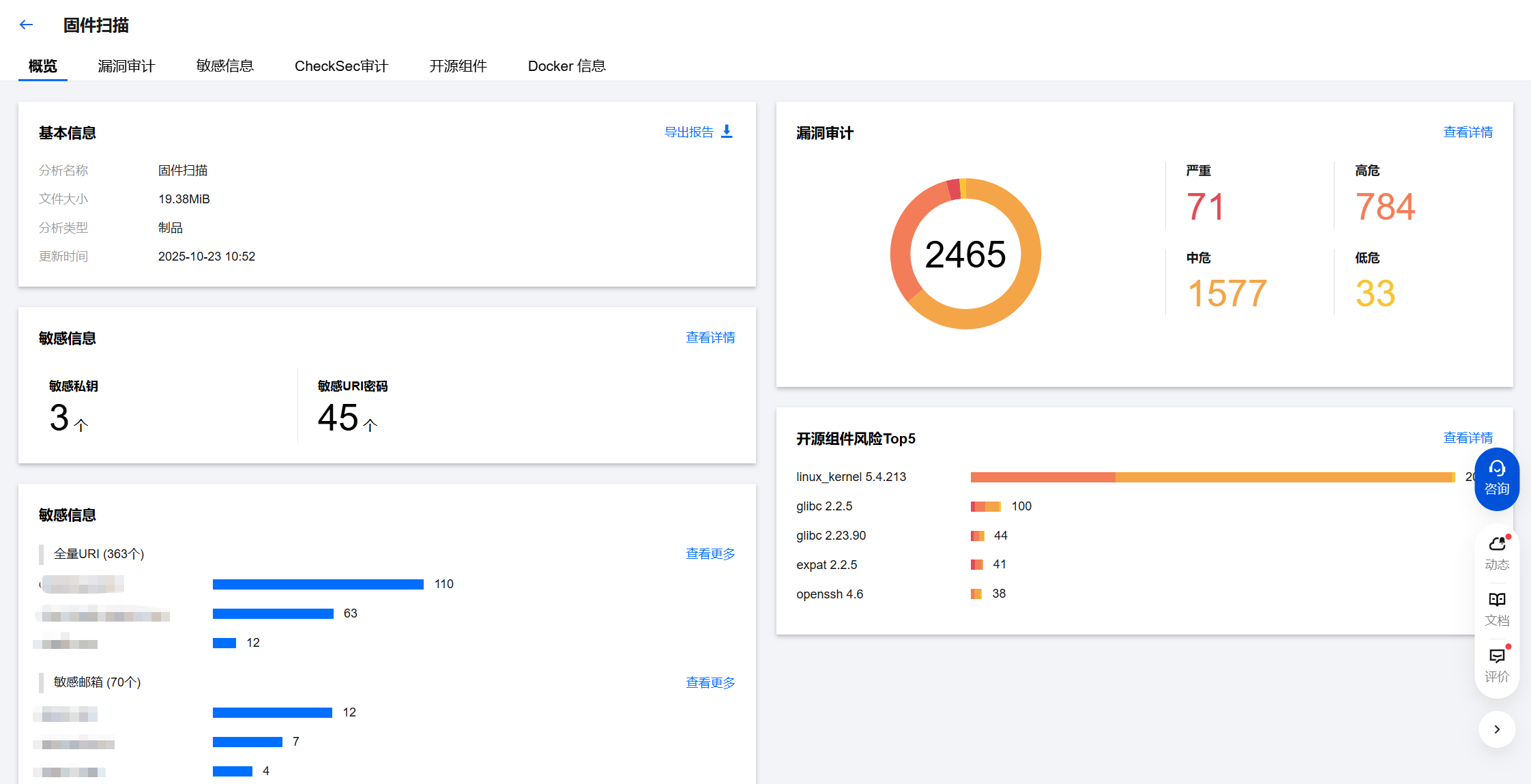 初步看了一下,存在一定的误报,但涉及组件漏洞极多,暂时没详细验证,大概率还是会涉及到的,后面会继续结合IDA来做详细的漏洞分析的。