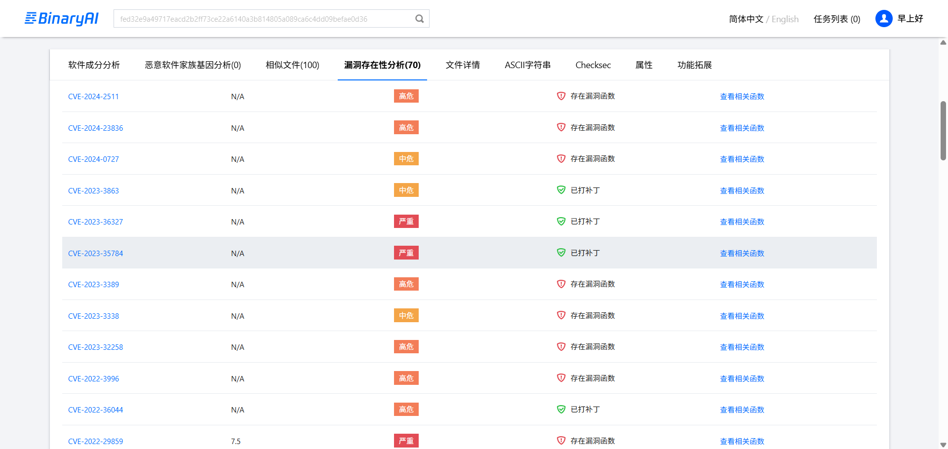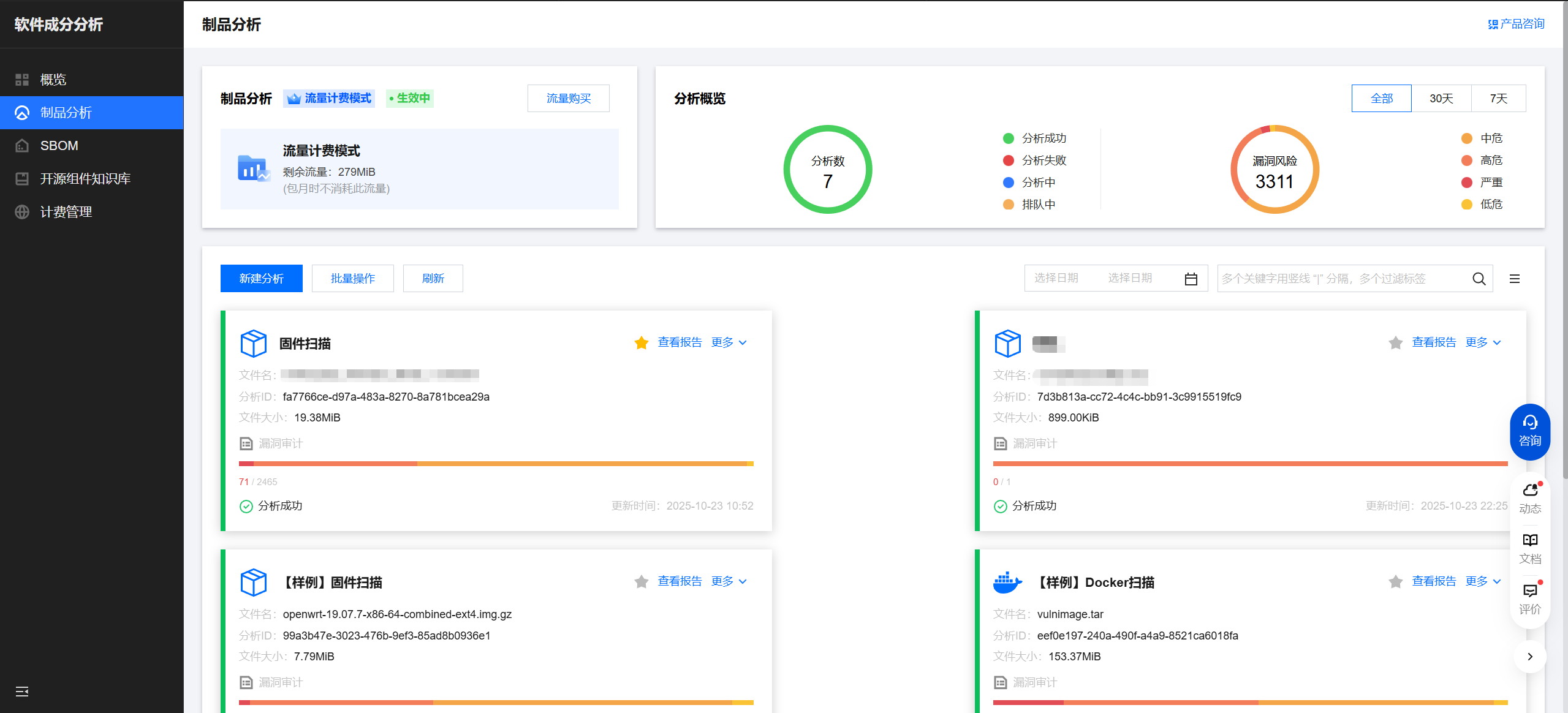 该平台为广大平台用户提供了包含:软件成分分析、交互式分析、恶意文件检测、AI 智能总结与搜索在内的多个二进制文件安全分析能力。