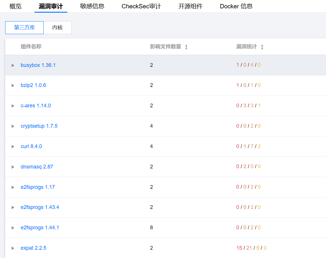 但是这边的显示还是太轻量级了,如果要查看到详细的,我们可以在https://console.cloud.tencent.com/bsca/sca/index 腾讯云平台的制品分析功能下面: