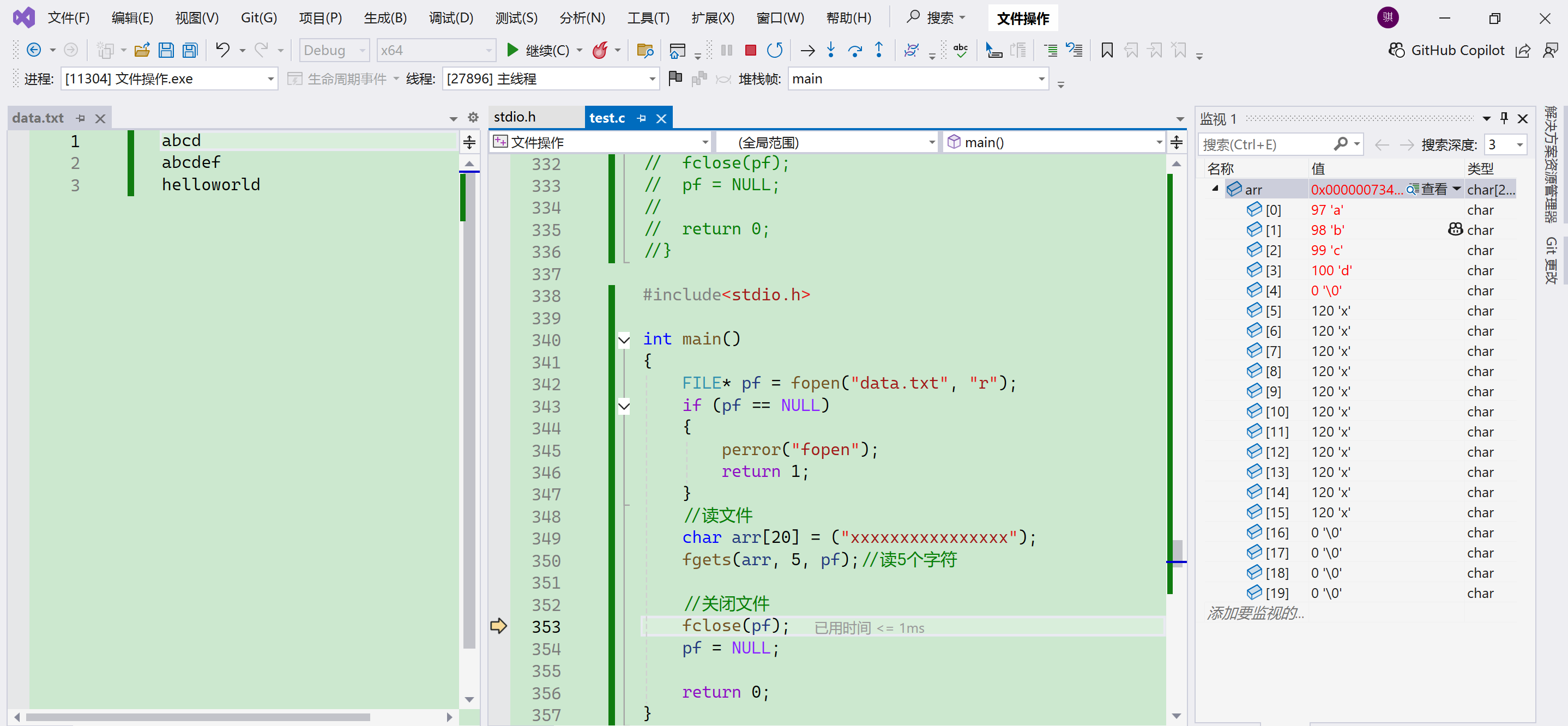 FILE* pf = fopen("data.txt", "r");要是把路径要写出来: