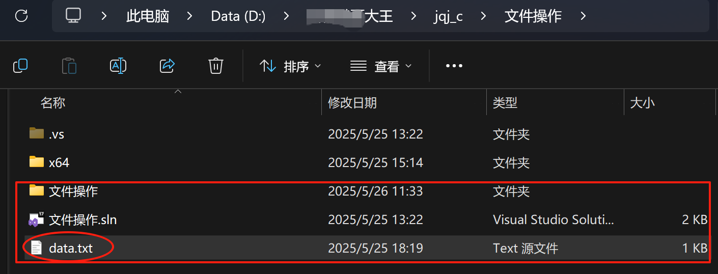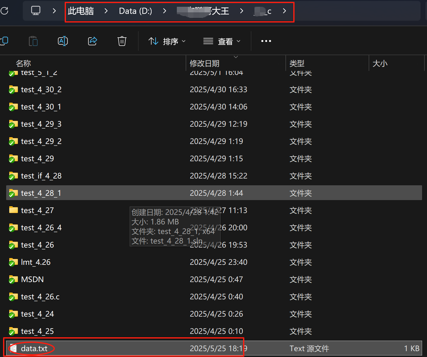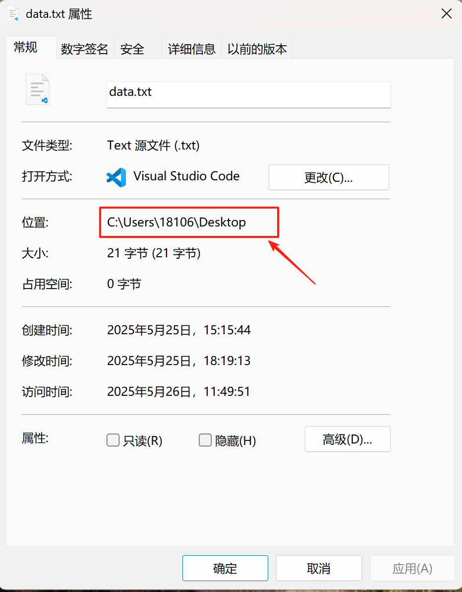 我们先看看路径,还是data.txt文件,我们在文件夹里查看一下它的当前路径: