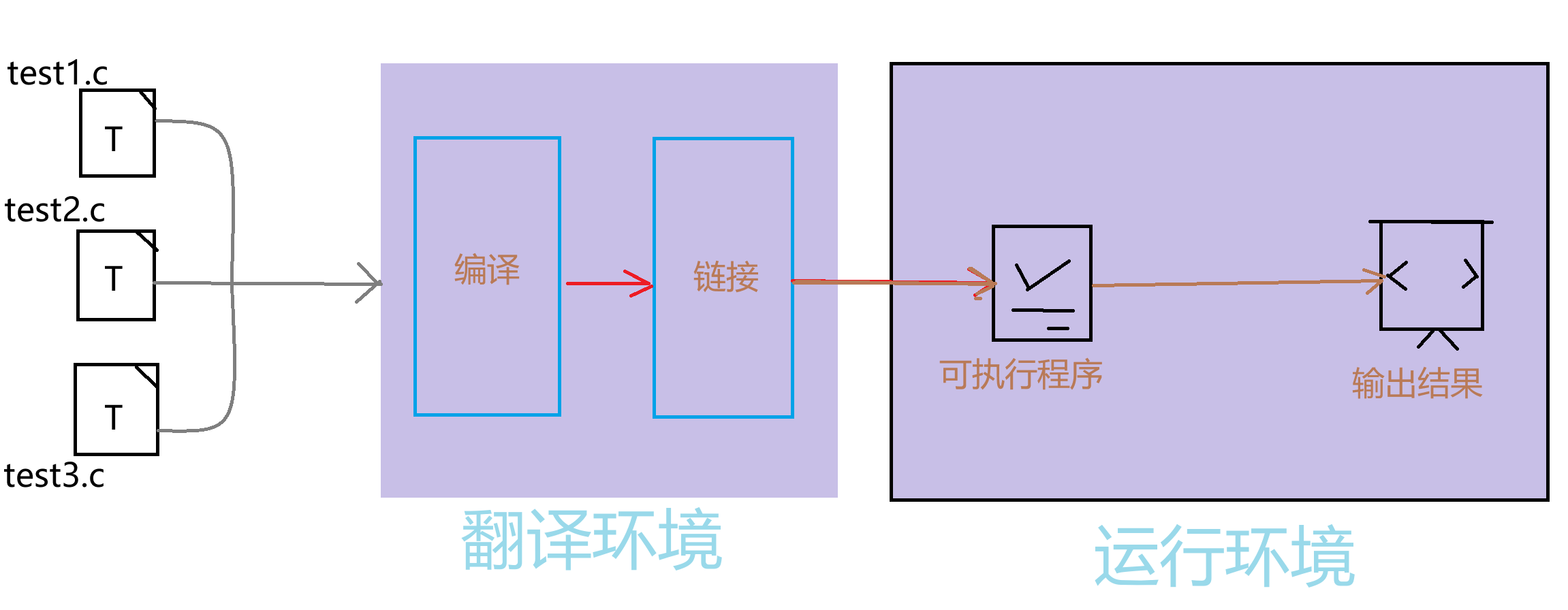 这个翻译环境是怎么将源代码转换为可执行的机器指令的呢?这里我们就得展开讲解一下翻译环境所做的事情,我们先了解一下翻译环境的组成:翻译环境是由编译和链接两个大的过程组成,而编译又可以分解成:预处理(也叫预编译)、编译、汇编三个过程。