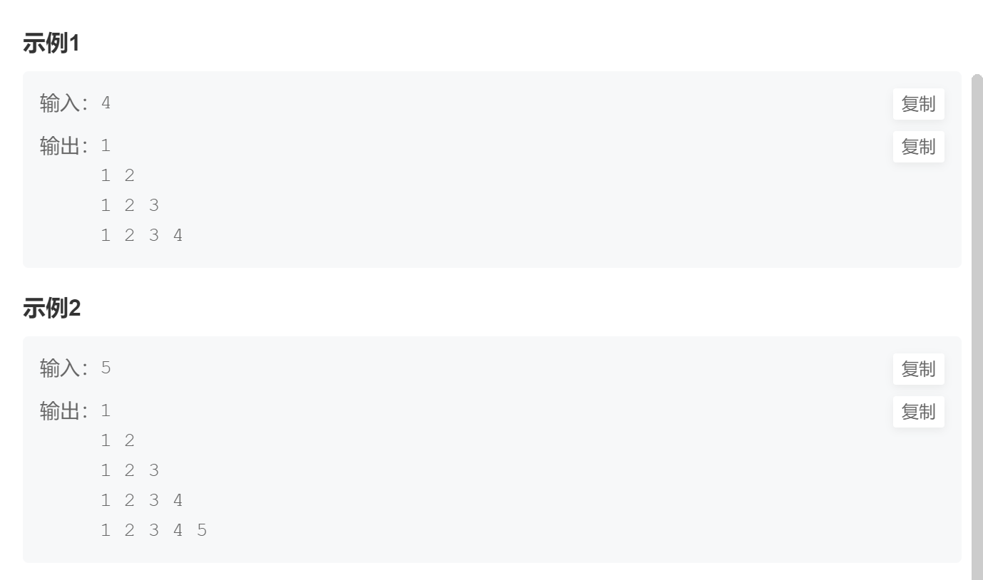 1、多组输入; 2、分析清楚每行打印的内容就行了。