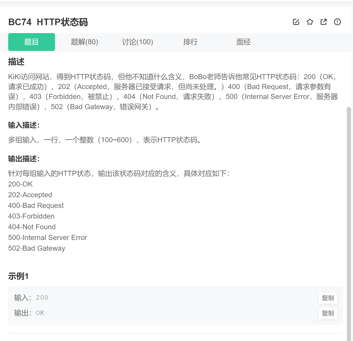 1、多组输入; 2、状态码比较多,且为整数,我们要不可以考虑用switch语句。