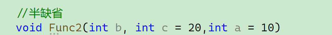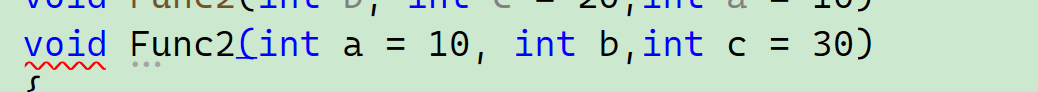 void Func2(int b, int c = 20,int a = 10)