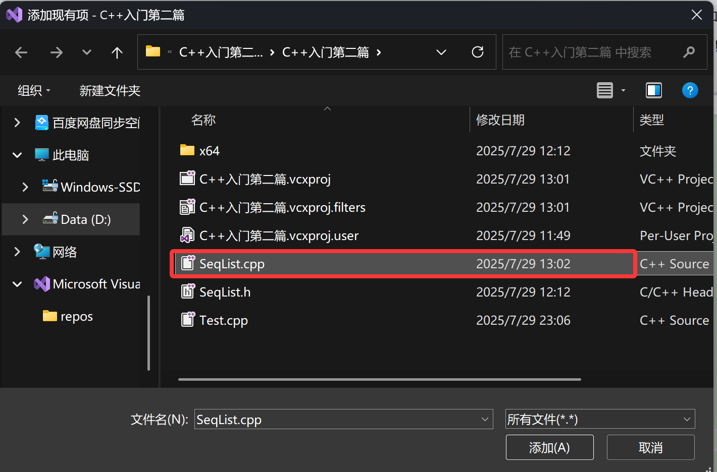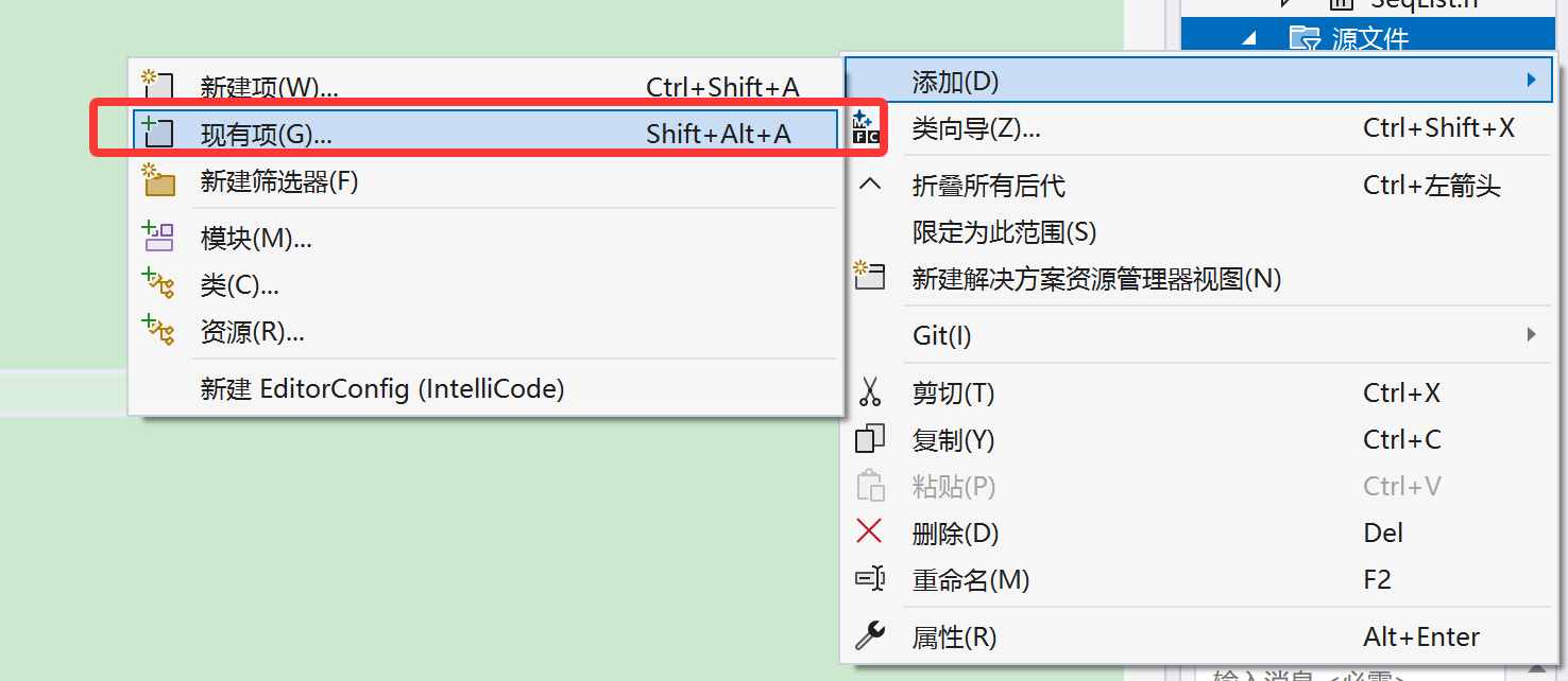 我们移除之后可以通过右击添加现有项——