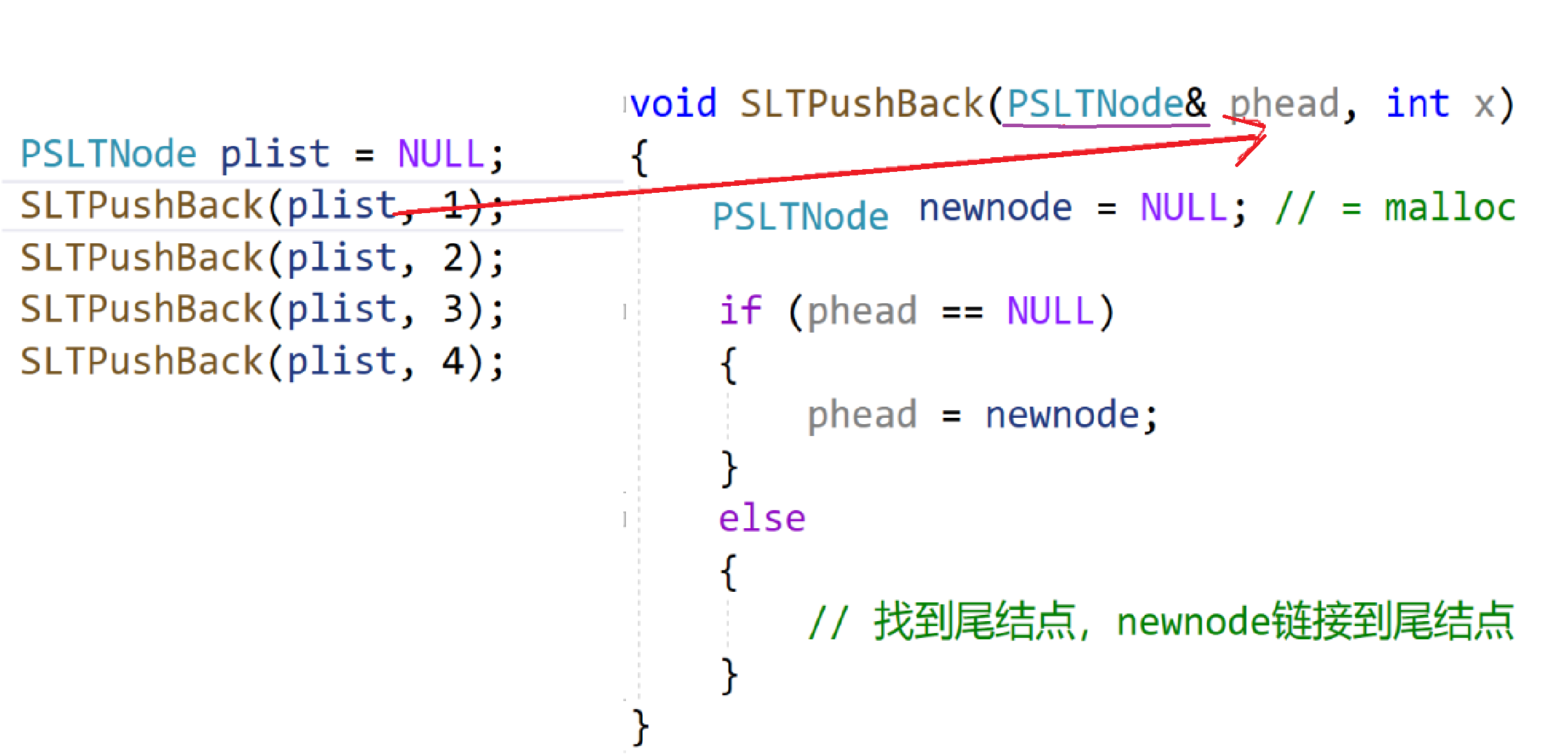 ////void SLTPushBack(SLTNode*& phead,int x)