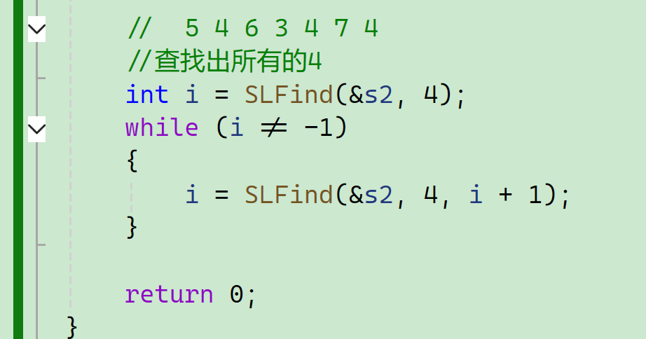 i = SLFind(&s2, 4, i + 1);