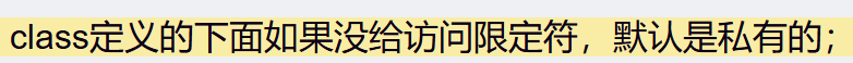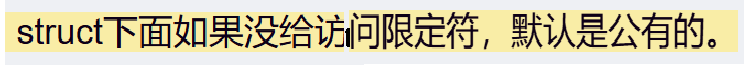 (1)class定义的下面如果没给访问限定符,默认是私有的; (2)(C++兼容C中struct的用(语)法,同时struct升级成类)为了兼容C,struct下面如果没给访问限定符,默认是公有的。