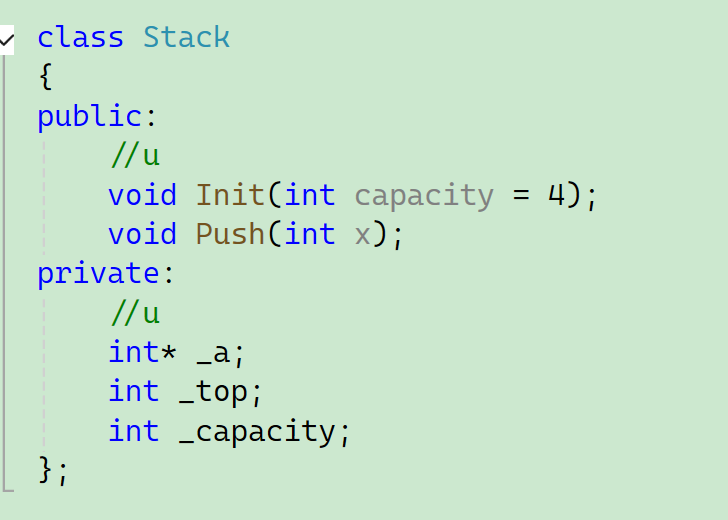 下面的栈和队列是不是都有叫Init、push、pop的函数,那么构不构成重载?不构成。 为什么? 前面说了,不同的域可以创建同名变量。这些同名的函数包括参数可以同时存在,因为它们是存在不同的域里面,两个域里面可能会定义同名的函数或者同名的变量,因此不存在两个类的这些变量、函数冲突的,因为它们有一个独立的作用域。