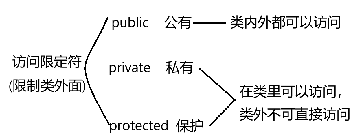 private(私有)和protected(保护)在现阶段没有区别,在我们介绍继承时再来介绍它们的区别了。private和protected这两个访问限定符用哪个都可以。