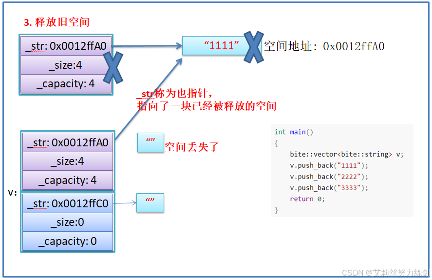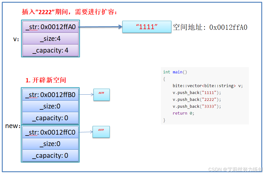 // 插入元素期间,可能会引起扩容,而导致原空间被释放