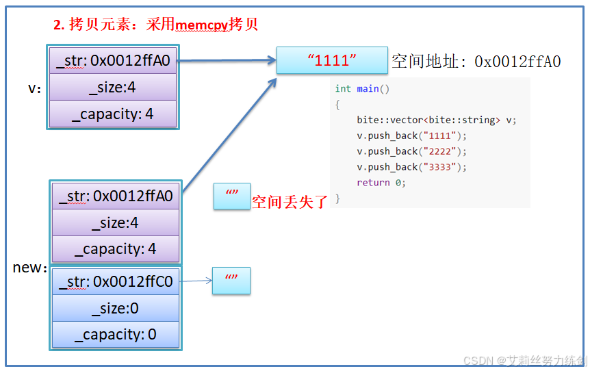 这里不是malloc、new出来的,没有初始化,只是开了个空间,所以如果直接赋值会出问题。