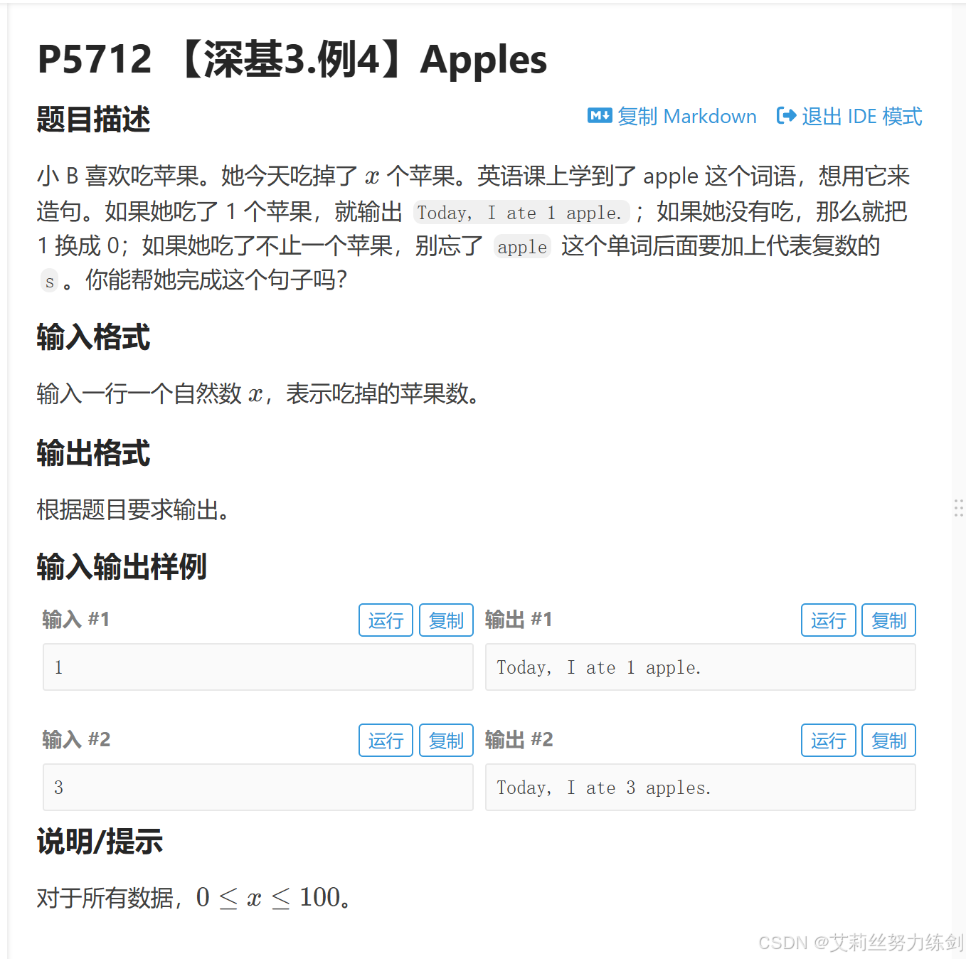 根据题目所给吃掉苹果的数量,我们分成三种情况,就能写出代码: