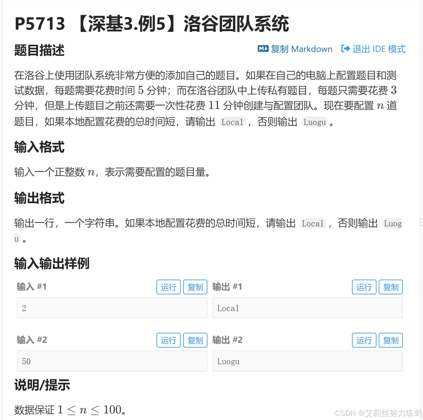 题目链接:P5713 【深基3.例5】洛谷团队系统