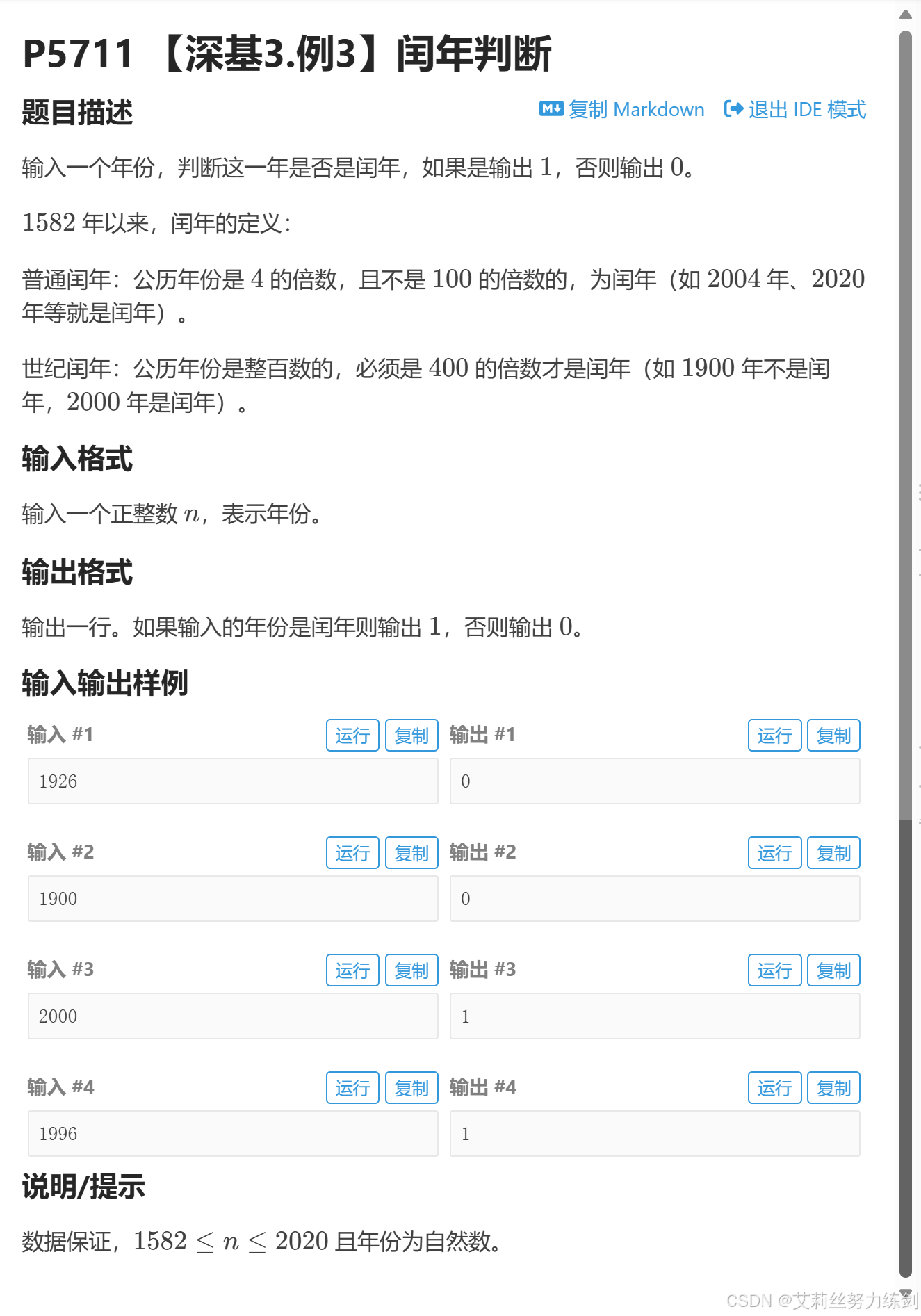 前言:本文主要用C语言和C++跟大家做一下洛谷的一些入门题,主要是分支机构的部分。