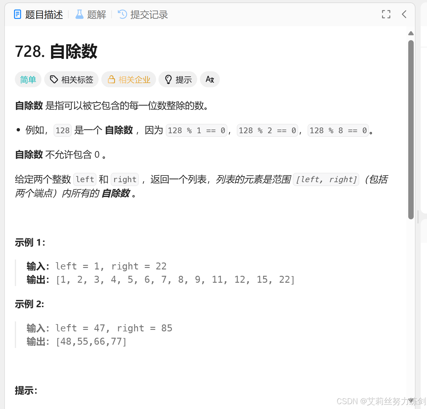 (1)遍历从left到right的所有数字; (2)对每个数字调用辅助函数检查是否为自除数; (3)将满足条件的数字加入结果集。