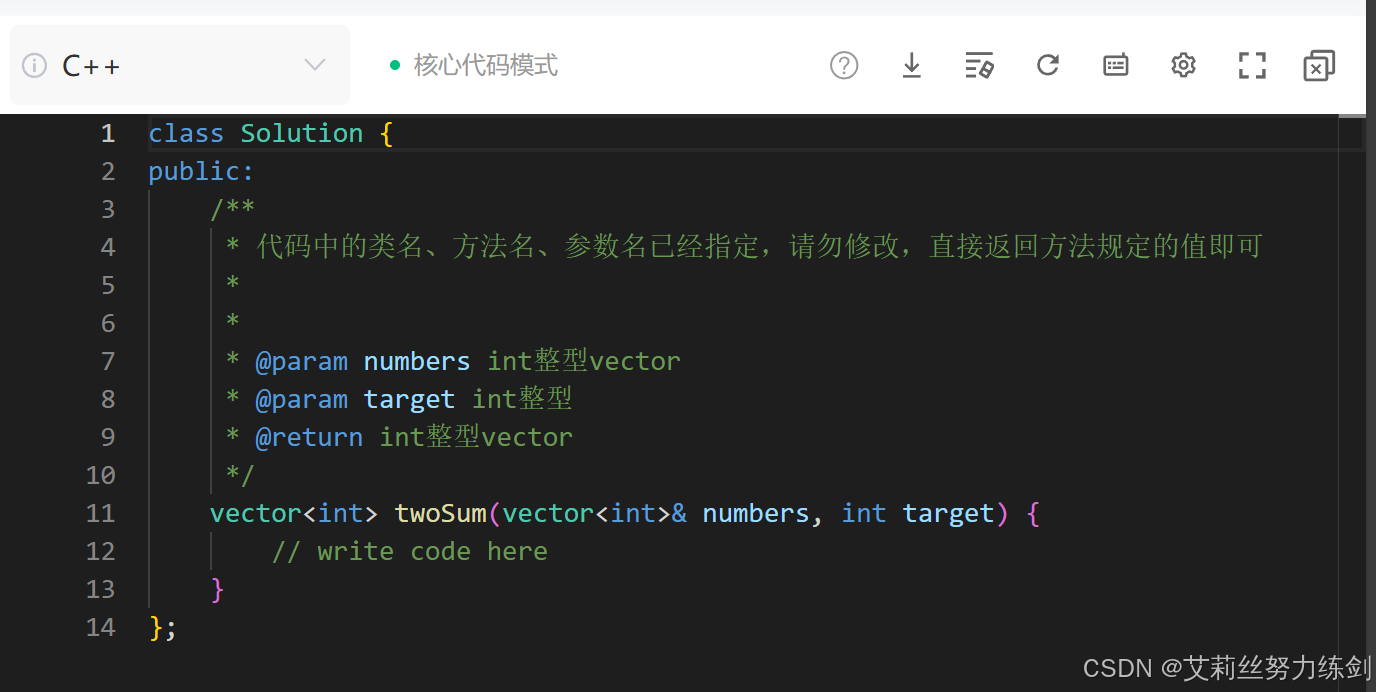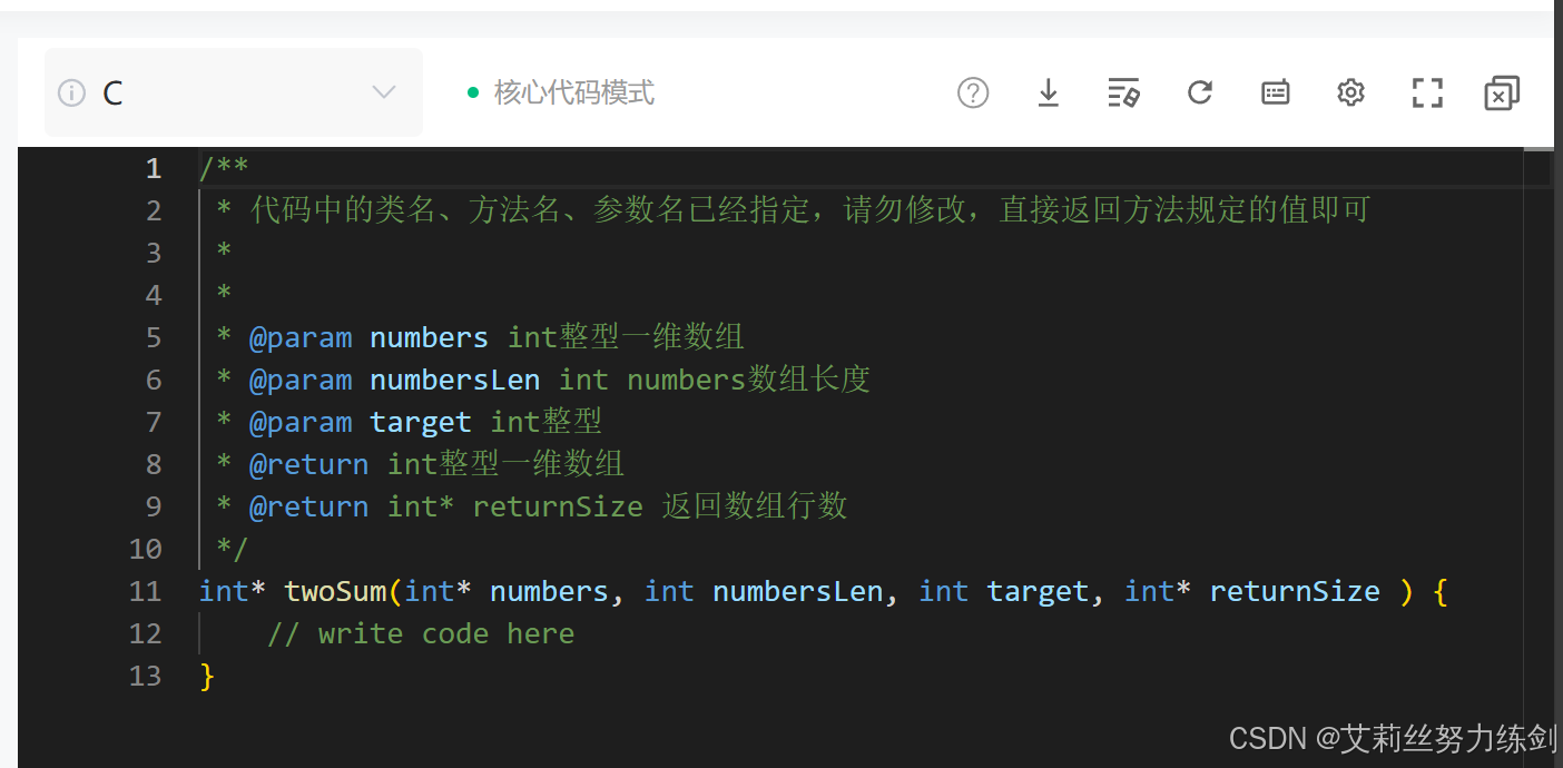 这道题是接口型的,下面是C语言的模版(如果是IO型就可以不用管它们了)——