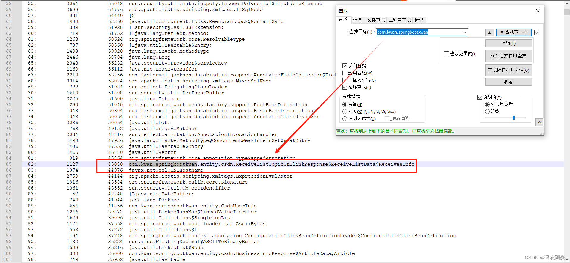 结合具体情况,发现有占用内存比较多的对象,就可以去项目里找对应代码分析一下,是不是哪里有大量创建该对象,过多引用或者为什么没有被回收。