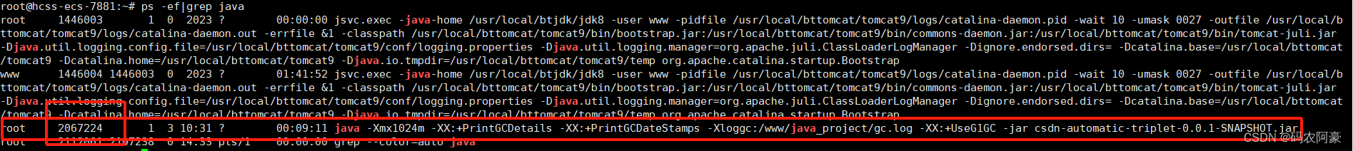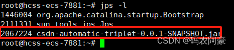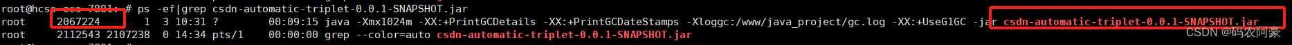或者精确查找 ps -ef|grep csdn-automatic-triplet-0.0.1-SNAPSHOT.jar