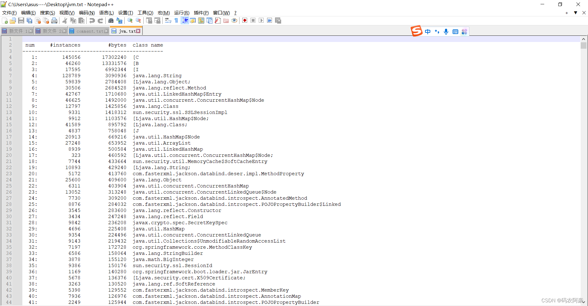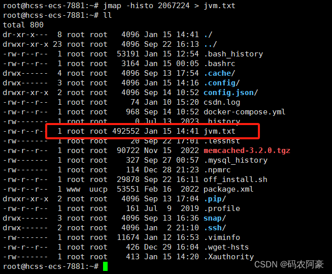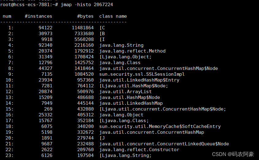 jmap -histo 2067224 > jvm.txt // 输出到jvm.txt