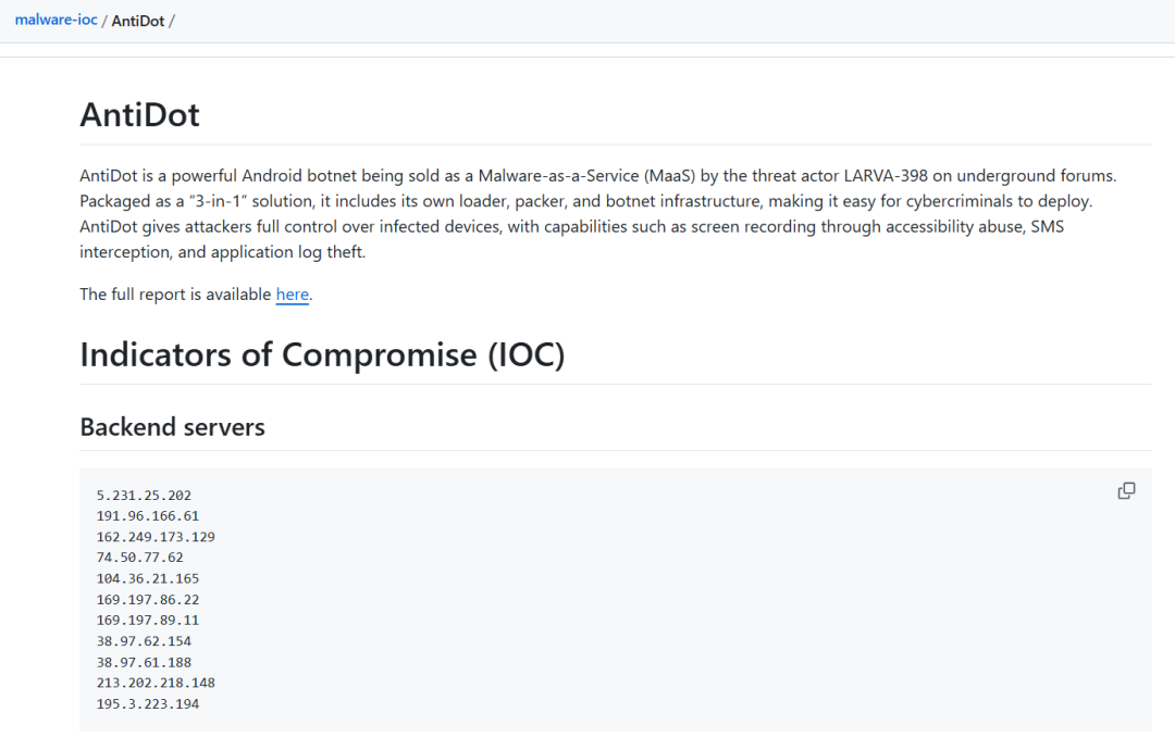 2.Android僵尸网络(AntiDot)威胁情报数据