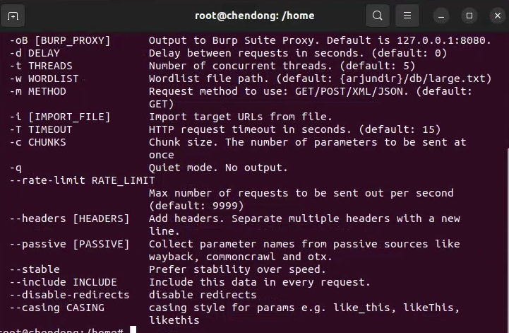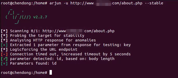 return delimiter, casingArjun采用先进的异常检测算法,通过9个因素比较HTTP响应来识别有效参数。