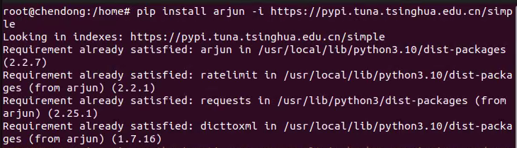 pipx install arjun注意:如果使用旧版本Python,请使用pip代替pipx