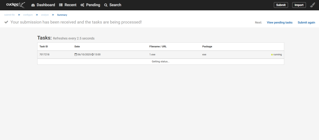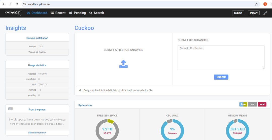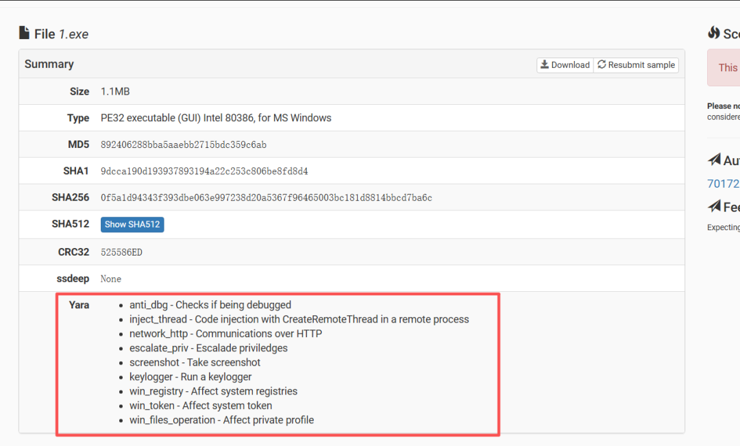 这里介绍一个在线的cuckoo sandbox,链接地址:https://sandbox.pikker.ee/,本地安装太麻烦了要求python2、virtual box,我就放弃了