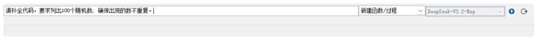 按 Ctrl + I ,输入我想要的“请补全代码,要求列出100个随机数, 确保出现的数不重复。”