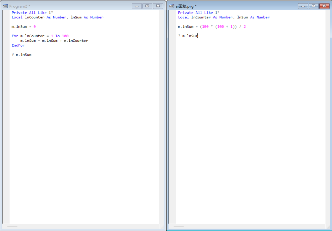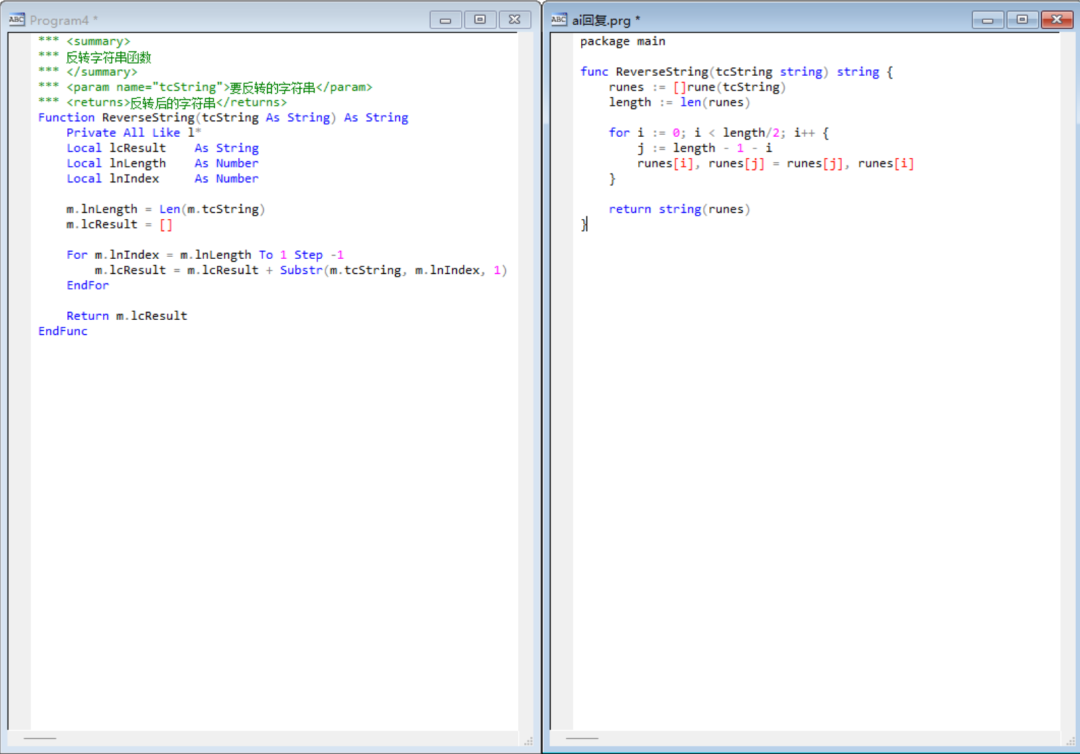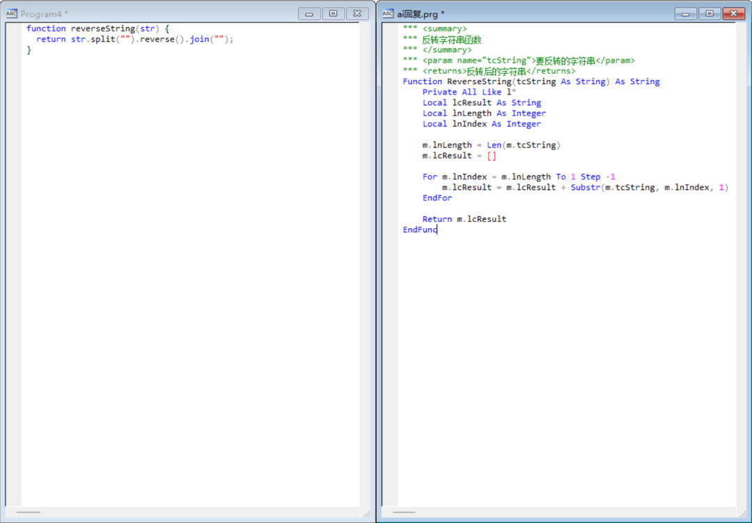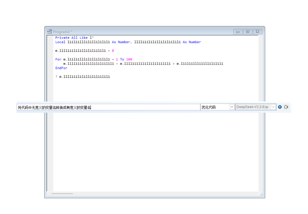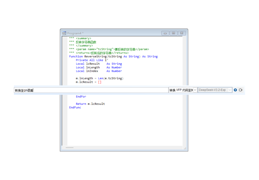 此功能将各种语言编写的代码,请 AI 帮忙转成 VFP 的写法。
