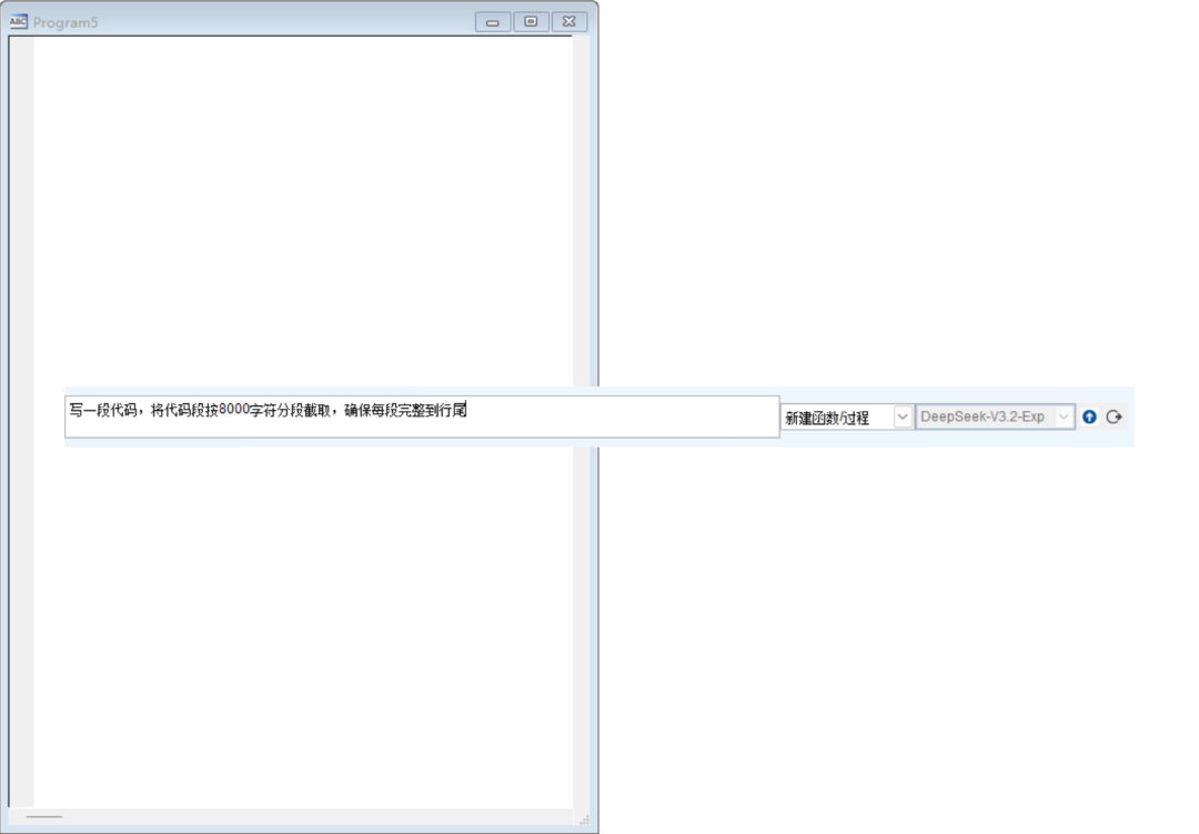 因此,退而求其次,在人工感到苦逼的写代码时,它或许可以提供一些帮助。例如,我在开发这个插件时,遇到一个问题,总结出来就是,我需要将超过8000个字符的代码段,分割为一组代码,分次向 AI 提交以完成规定给它的任务。