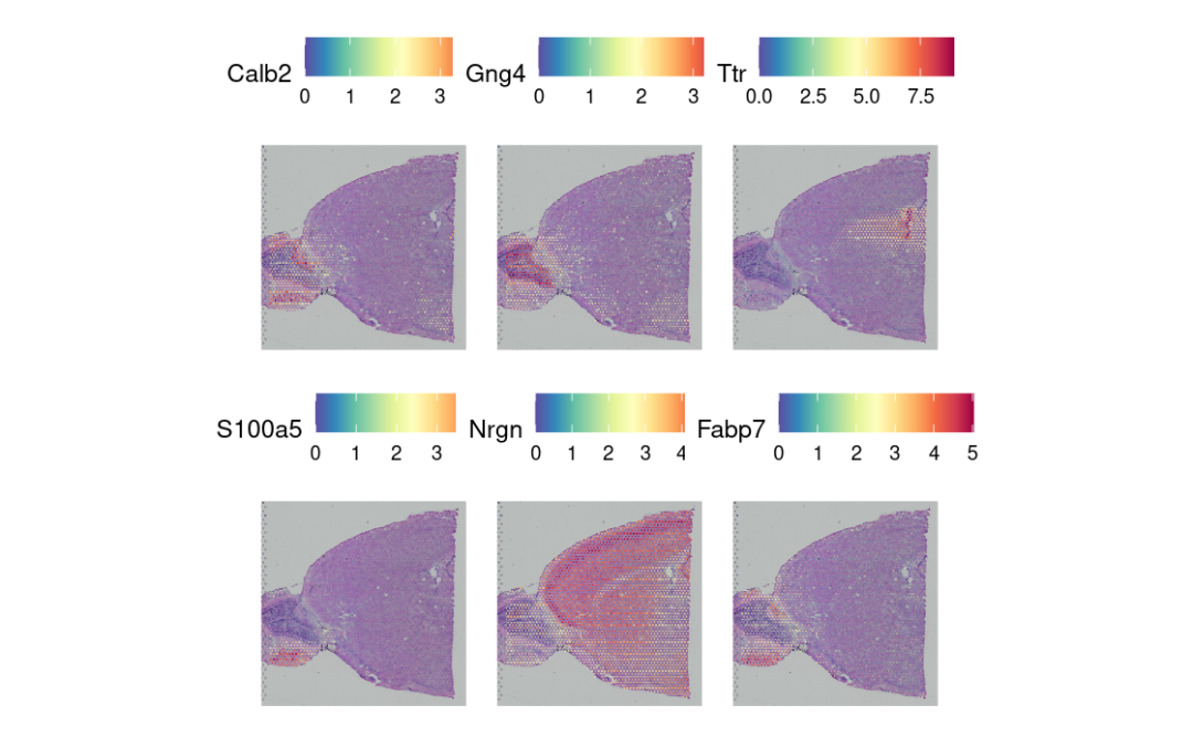 这里我们可视化前6个特征基因的的表达。🥳