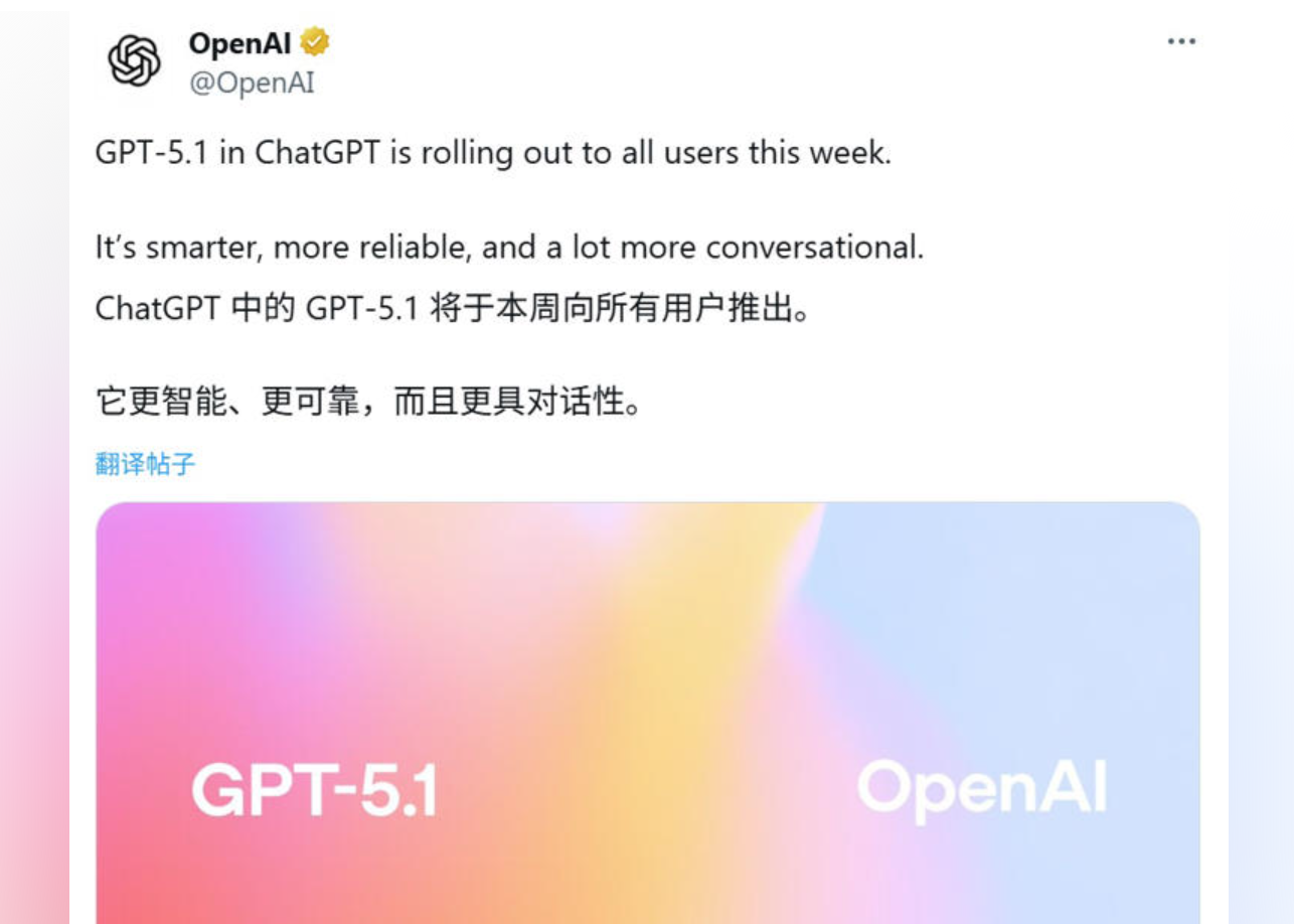 影响:GPT-5.1的发布进一步巩固了OpenAI在通用AI领域的领先地位,提升其在企业级和个人应用市场的渗透率,推动AI助手向更自然、更可靠的方向发展。