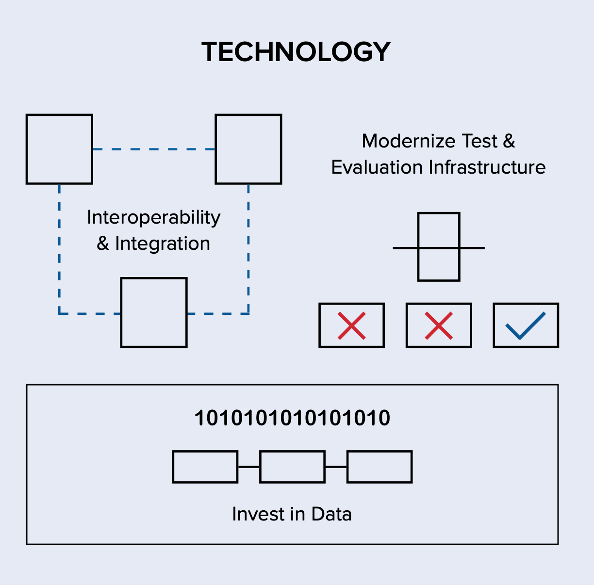 为了系统性地解决这些“当前”的挑战,并实现软件定义战争的“未来”目标,委员会围绕三大支柱——技术、流程和人才——构建了一套包含九项核心建议的行动框架。
