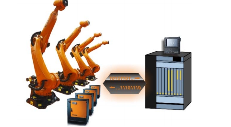 KUKA机器人有四种运行方式:手动慢速运行(T1)、手动快速运行(T2)、自动运行(AUT)和外部自动运行(AUT EXT)。而外部自动运行模式(AUT EXT)在实际生产中经常用到,KUKA机器人的外部自动功能允许上级控制系统(如PLC等)通过特定的接口控制机器人的进程,实现对机器人程序的远程启动、停止和状态监控等操作。在实际应用中,KUKA机器人的外部自动运行模式通过配置CELL.SRC程序和输入/输出端信号来实现。这种模式主要应用于需要将机器人集成到大规模生产线中的场景,通过PLC这样的上级控制器来协调机器人与其他设备的同步工作,确保整个生产线的高效运转。